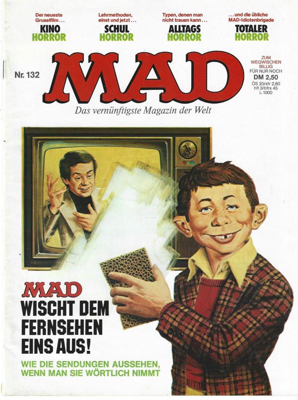 Comic - MAD Nr. 132Das vernünftigste Magazin der WeltTitel: MAD wischt dem Fernsehen eins aus!Verlag: Williams Verlag GmbH HamburgMagazin 33 SeitenFormat: 20 cm x 27 cmZustand: sehr gut