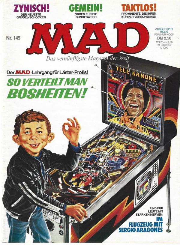 Comic - MAD Nr. 145Das vernünftigste Magazin der WeltTitel: Der MAD-Lehrgang für Läster-Profis!So verteilt man Bosheiten!Verlag: Williams Verlag GmbH HamburgMagazin 33 SeitenFormat: 20 cm x 27 cmZustand: sehr gut, Papier altersbedingt nachgedunkelt