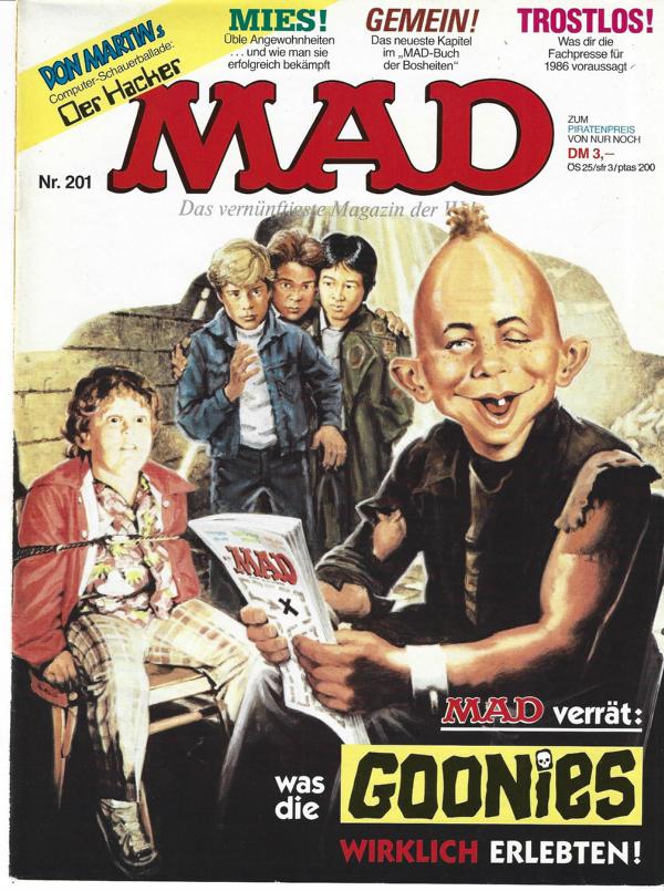 Comic - MAD Nr. 201Das vernünftigste Magazin der WeltTitel: MAD verrät: was die Goonies wirklich erlebten!Verlag: MAD Verlag Heidi Recht GmbH HamburgMagazin 42 SeitenFormat: 20 cm x 27 cmZustand: sehr gut