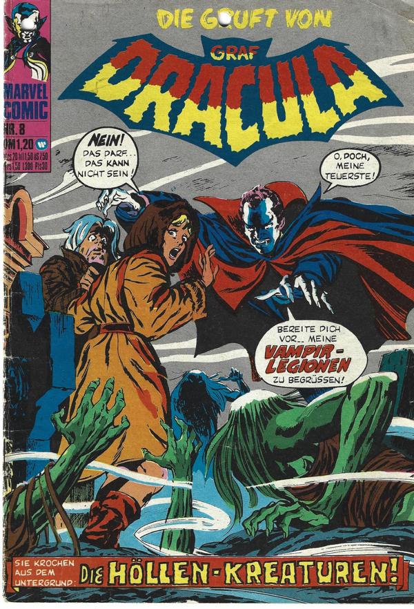 Marvel Comic - Graf Dracula Nr. 8Verlag: Williams Verlag (c) 1974Comic Heft, 29 Seiten Format: 17,5 x 25,5 cmZustand: gut erhaltenes Exemplar leider gelochtComic Marvel Comic
