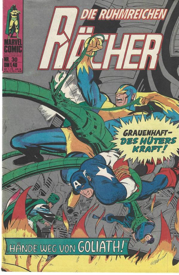 Marvel ComicDie ruhmreichen Rächer Nr. 30Titel: Hände weg von Goliath! Verlag: Williams Verlag Hamburg 1976Comic-Heft 30 SeitenFormat: 17 x 24,5 cmZustand: sehr gut