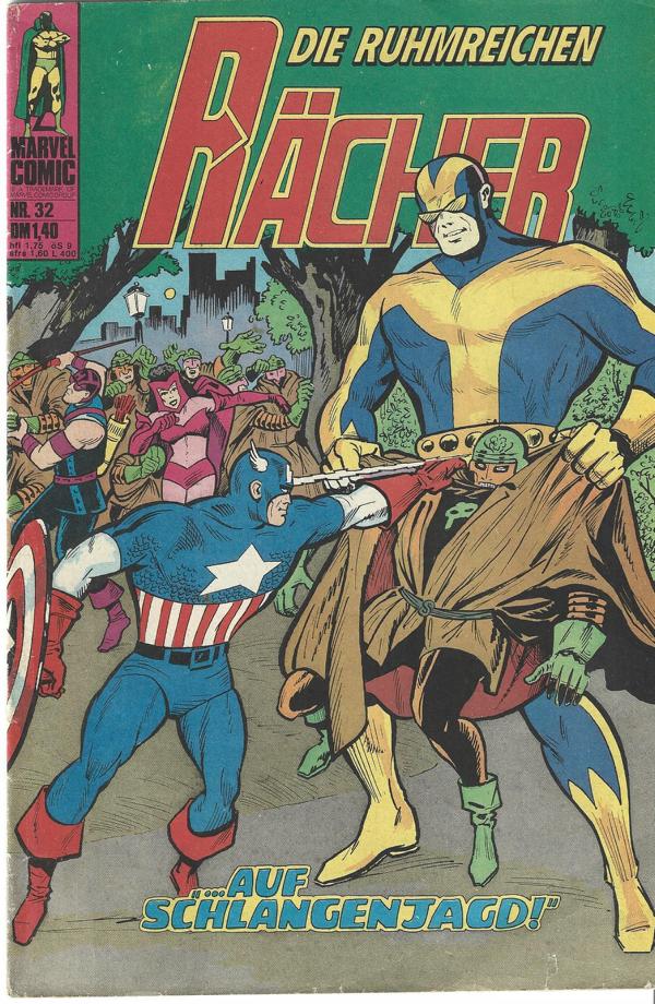 Marvel ComicDie ruhmreichen Rächer Nr. 32Titel: ... auf Schlangenjagd! Verlag: Williams Verlag Hamburg 1976Comic-Heft 30 SeitenFormat: 17 x 24,5 cmZustand: sehr gut