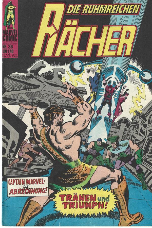 Marvel ComicDie ruhmreichen Rächer Nr. 38Titel: Tränen und Triumpf! Verlag: Williams Verlag Hamburg 1976Comic-Heft 30 SeitenFormat: 17 x 24,5 cmZustand: sehr gut