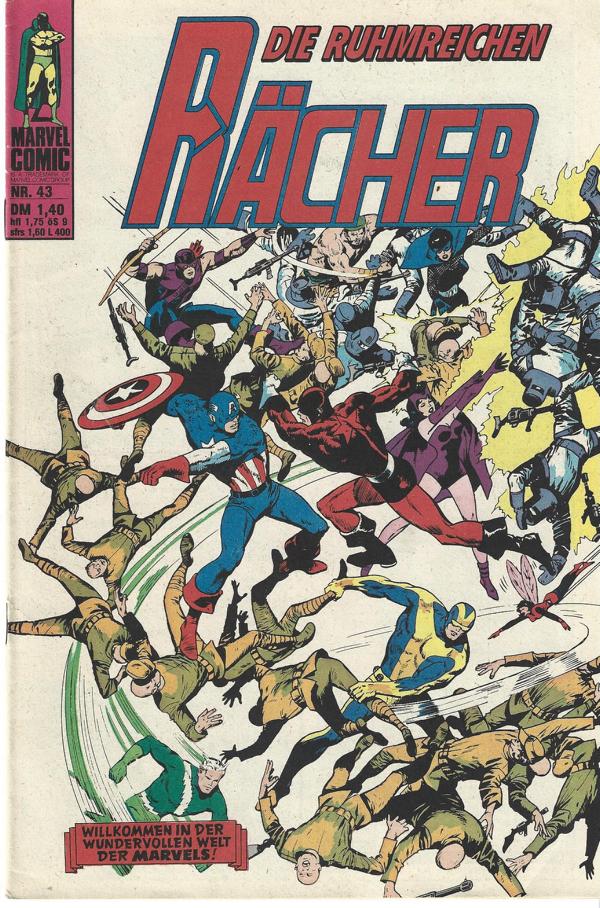 Marvel ComicDie ruhmreichen Rächer Nr. 43Titel: Auch der tapfere stirbt! Verlag: Williams Verlag Hamburg 1976Comic-Heft 30 SeitenFormat: 17 x 24,5 cmZustand: sehr gut