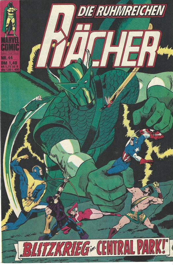 Marvel ComicDie ruhmreichen Rächer Nr. 44Titel: Blitzkrieg im Central Park! Verlag: Williams Verlag Hamburg 1976Comic-Heft 30 SeitenFormat: 17 x 24,5 cmZustand: sehr gut