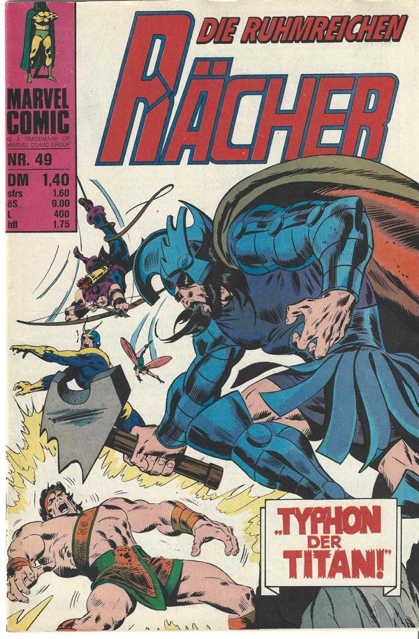 Marvel ComicDie ruhmreichen Rächer Nr. 49Titel: Typhon der Titan!Verlag: Williams Verlag Hamburg 1976Comic-Heft 30 SeitenFormat: 17 x 24,5 cmZustand: sehr gut