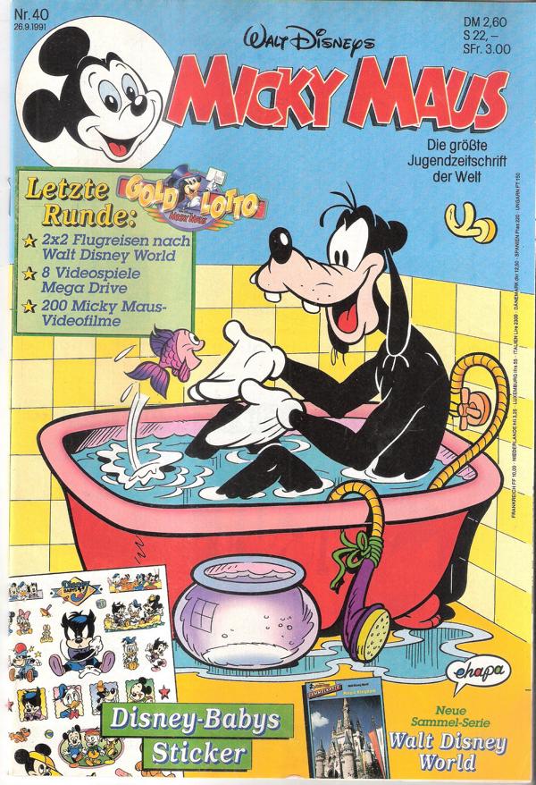 Walt Disney Micky Maus 1991 Nr. 40Verlag: Egmont Ehapa 1991 Comic-Heft 66 SeitenFormat: 17,5 cm x 26 cmGewicht: 116 gZustand: gebraucht, sehr gut Comic