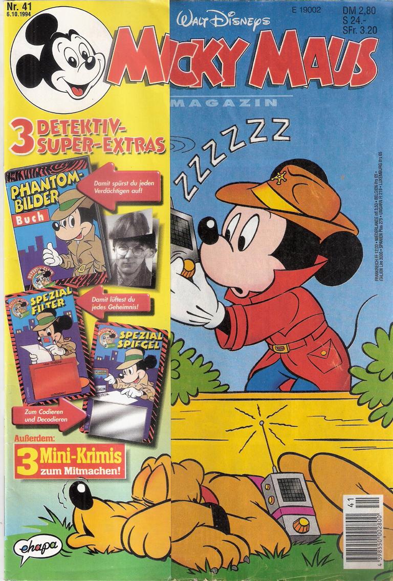 Walt Disneys Micky Maus Heft Nr. 41/1994ohne BeilagenEhapa Verlag 1994Comic Heft, 53 SeitenFormat: 17,5 x 26 cmGewicht: 80 gZustand: gut, mit Gebrauchsspuren