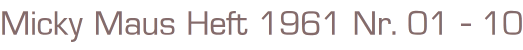Walt Disneys Micky Maus Heft Nr. 1-10Ehapa Verlag 196110 Stück Comic Hefte Format: 17,5 x 26 x 2cmGewicht: 605 gZustand: dem alter entsprechend gut erhaltene Hefte mit Gebrauchsspuren
