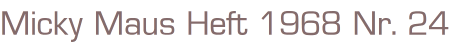 Micky Maus Heft 1968 Nr. 24Ehapa Verlag 1968Comic Heft, 39 SeitenFormat: 17,5 x 26 cmGewicht: 70 gZustand: gut erhaltenes Heft mit leichten Gebrauchsspuren