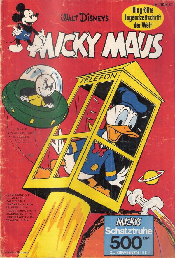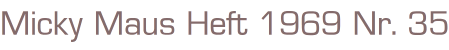 Micky Maus Heft 1969 Nr. 35Ehapa Verlag 1969Comic Heft, 39 SeitenFormat: 17,5 x 26 cmGewicht: 62 gZustand: gut erhaltenes Heft mit leichten Gebrauchsspuren