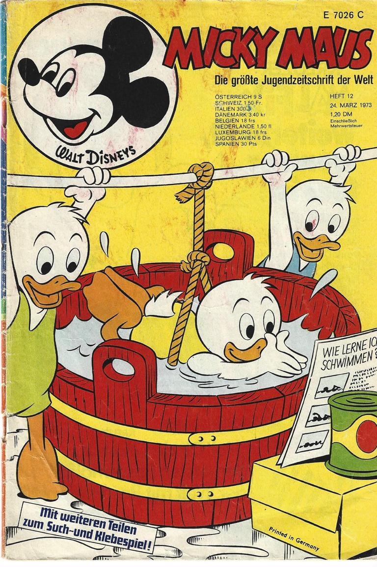 Micky Maus Heft 1973 Nr. 12Ehapa Verlag 1973Comic Heft, 39 SeitenFormat: 17,5 x 26 cmZustand: gut, mit leichten Gebrauchsspuren,komplett
