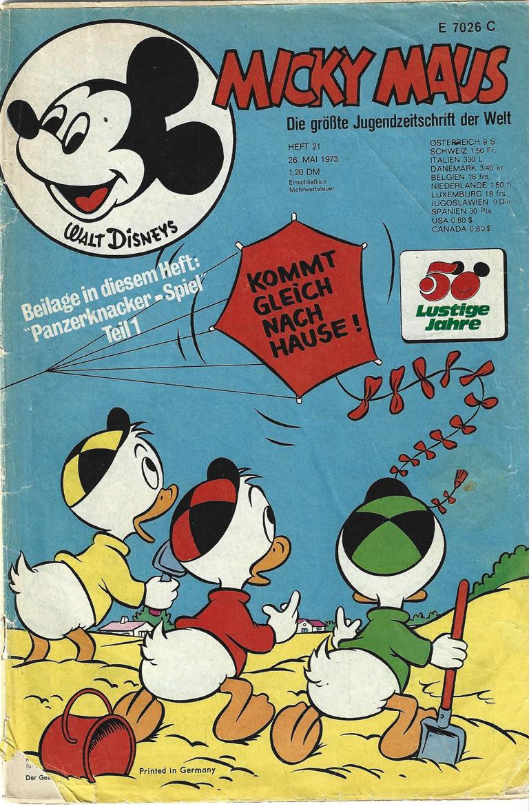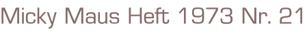 Micky Maus Heft 1973 Nr. 21Ehapa Verlag 1973Comic Heft, 39 SeitenFormat: 17,5 x 26 cmZustand: gut, mit leichten Gebrauchsspuren