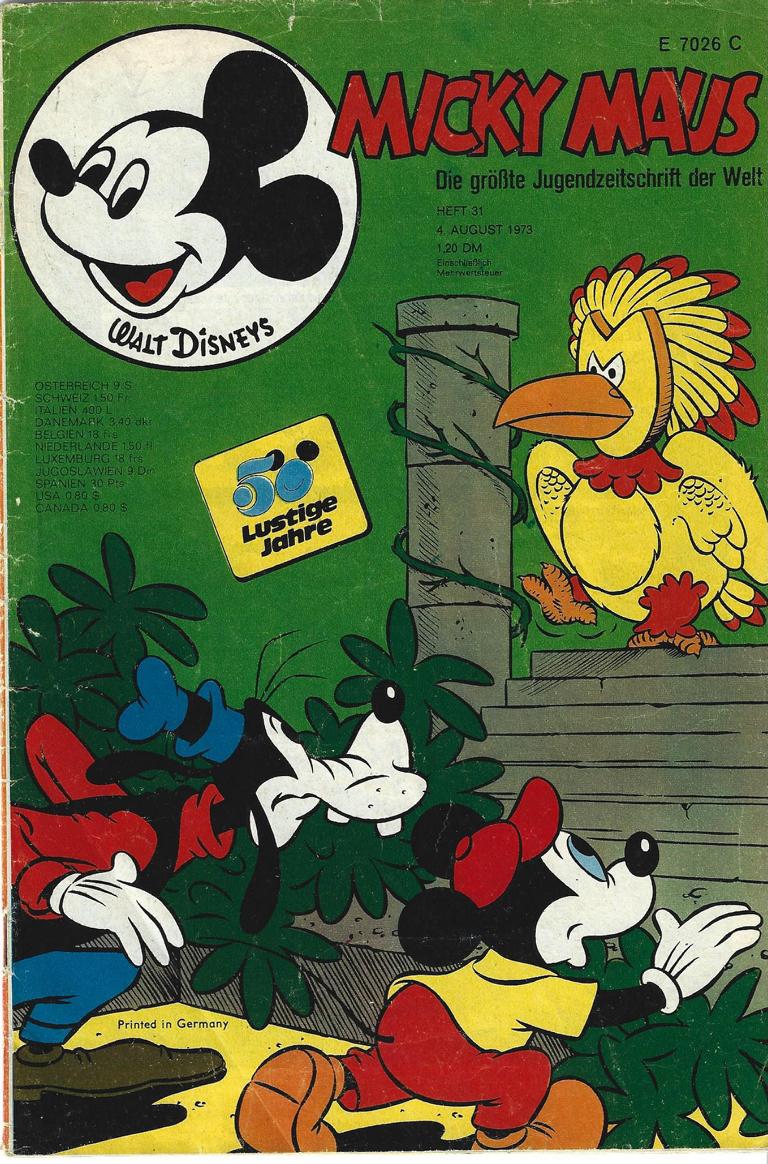 Micky Maus Heft 1973 Nr. 31Ehapa Verlag 1973Comic Heft, 39 SeitenFormat: 17,5 x 26 cmZustand: gut, leichte GebrauchsspurenSeite 25/25 ein Kleines Stück herausgeschnittenca. 1cm x 3 cm