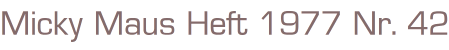 Walt Disneys Micky Maus Heft Nr. 42/1977ohne Beilagen Ehapa Verlag 1977Comic Heft, 43 SeitenFormat: 17,5 x 26 cmGewicht: 68 gZustand: mit leichteren Gebrauchsspuren
