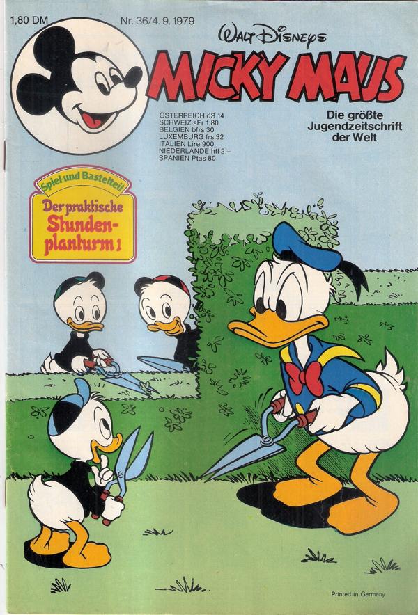 Walt Disneys Micky Maus Heft Nr. 36/1979mit Beilagen Ehapa Verlag 1979Comic Heft, 43 SeitenFormat: 17,5 x 26 cmGewicht: 63 gZustand: gut