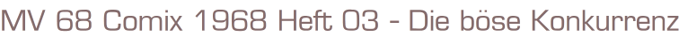 MV 68 Comix Nr. 3/1968Titel: Asterix die böse KonkurrenzVerlag: Ehapa Verlag StuttgartComic-Heft, 31 SeitenFormat: 17 x 25 cmGewicht: 70 gZustand: gut erhaltenes Exemplarmit Gebrauchsspuren
