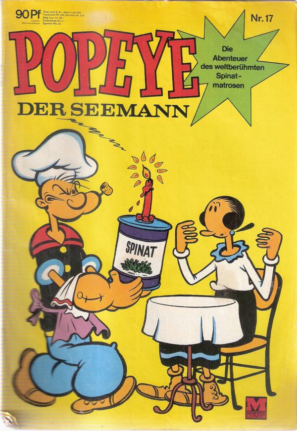 Popeye der Seemann Nr. 17Verlag: Moewig Verlag München (c) 1969Comic 31 SeitenFormat: 18 x 26 cmGewicht: 55 gZustand: gut, leichte Gebrauchsspuren,Cover hinten verkritzelt, am Rücken eingerissen