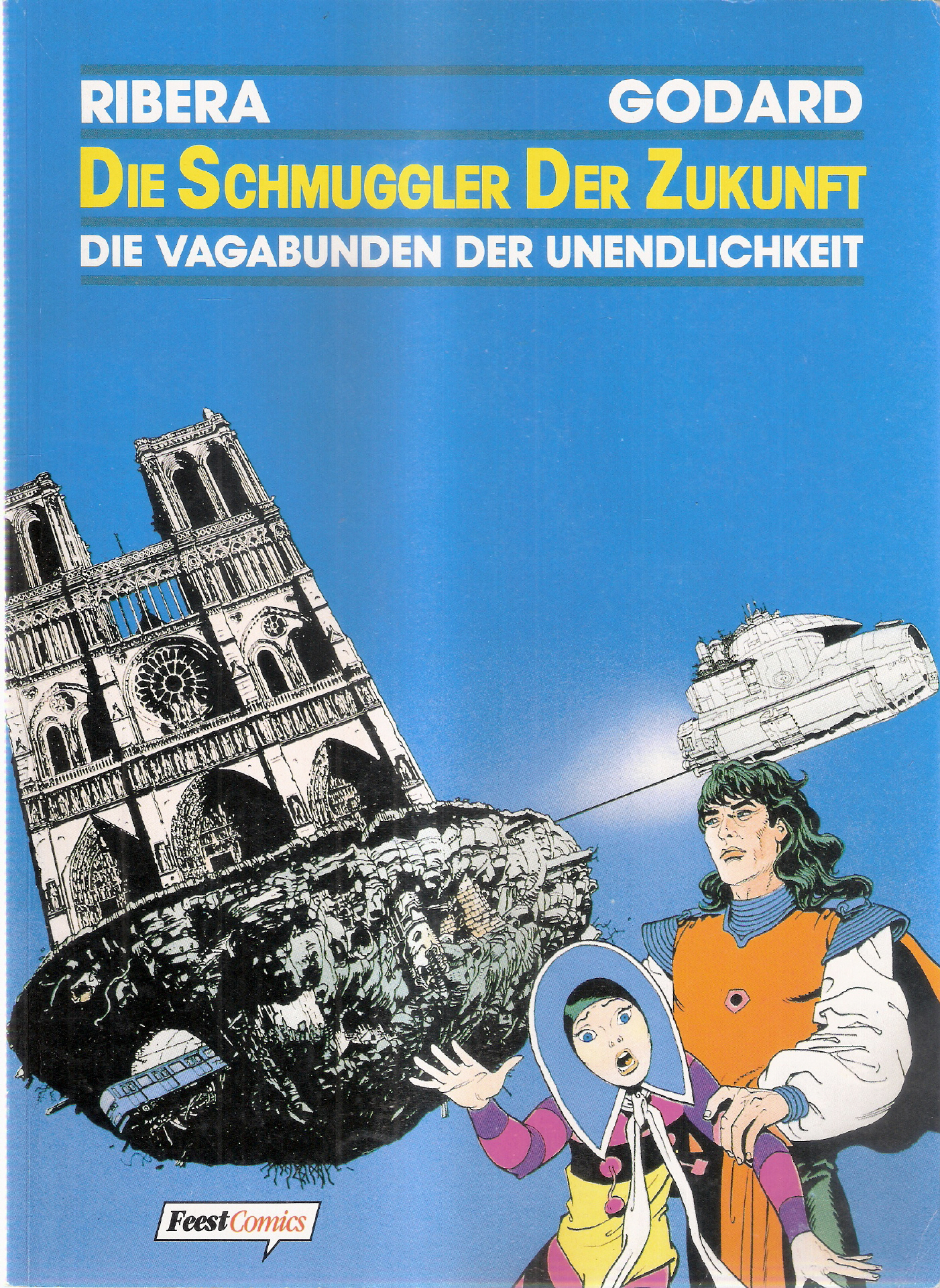Die Schmuggler der Zukunft - Die Vagabunden der Unendlichkeitvon: Ribera / Godard ISBN 9783893434725Verlag: Feest Comics, Stuttgart (c) 1991Comic 48 SeitenFormat: 21,5 x 29,5 cmGewicht: 223 gZustand : gut, leichte Gebrauchsspuren
