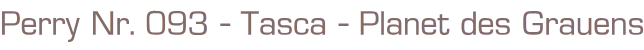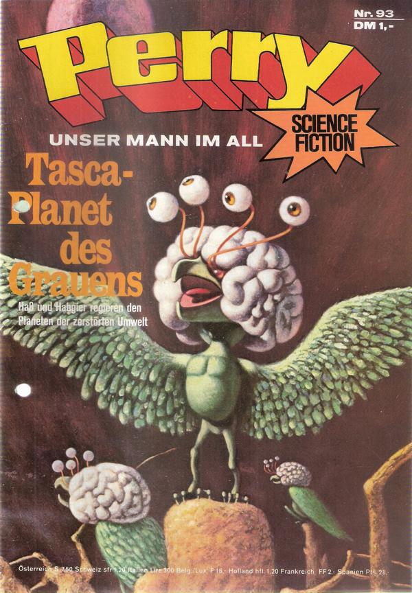 Perry unser Mann im All Nr.93Titel: Tasca - Planet des GrauensVerlag: Moewig , 1973Comic Heft 30 SeitenFormat: 18 x 26 cmGewicht: 54 gZustand: gelocht, sehr gut