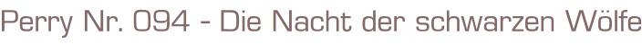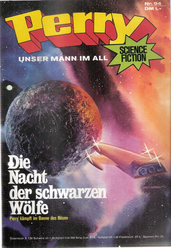 Perry unser Mann im All Nr. 94Titel: Die Nacht der schwarzen WölfeVerlag: Moewig , 1974Comic Heft 30 SeitenFormat: 18 x 26 cmGewicht: 55 gZustand: gelocht, sehr gut