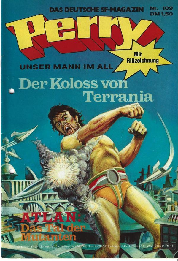 Perry unser Mann im All Nr.78Mit RißzeichnungTitel: Der Koloss von Terrania.Verlag: Moewig , 1974Comic Heft 46 SeitenFormat: 18 x 26 cmZustand: gelocht, sehr gut
