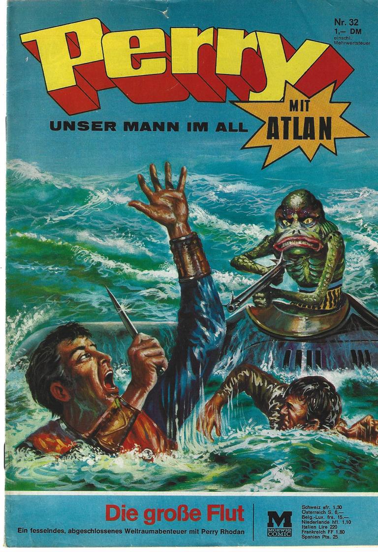 Perry unser Mann im All Nr.32 Titel: Die große FlutVerlag: Moewig , 1969Comic Heft 30 SeitenFormat: 17,5 x 24 cmGewicht: 61 gZustand: gebraucht, sehr gut