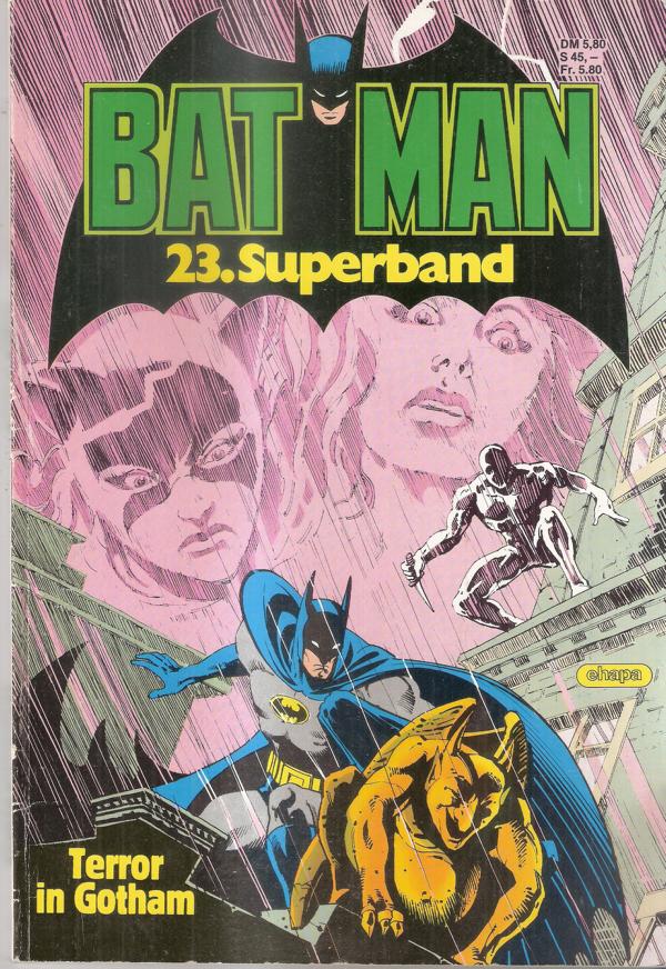 BAT MAn 23. Superband - Terror in Gotham Text: Doug Moench Zeichnungen: Tom Mandrake, John Costanza, Adrienne Roy Verlag: (c) Ehapa Verlag 1986Softcover, 79 Seiten Format: 19 cm x 28 cm x 0,5 cmZustand: gut, leichte Gebrauchsspuren
