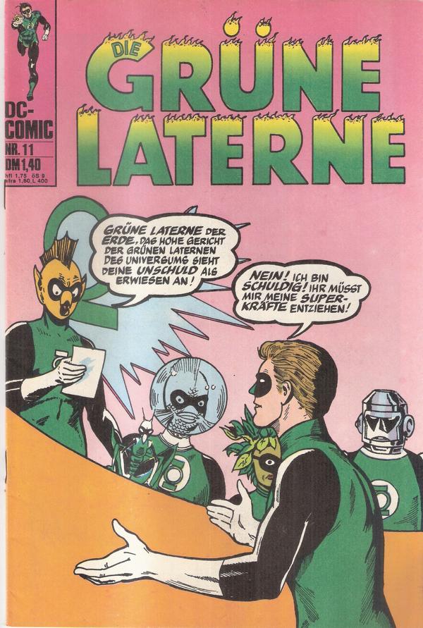DC-Comic Nr. 11 - Die grüne LaterneVerlag: Williams Verlag Hamburg 1976(c) 1960 Green LanternComic Heft 31 SeitenFormat: 17 x 24,5 cmZustand: Titelblatt mit deutlichenGebrauchsspuren (eingerissen, hintensehr stark beschädigt und lose), Seite 3-30in gutem Zustand