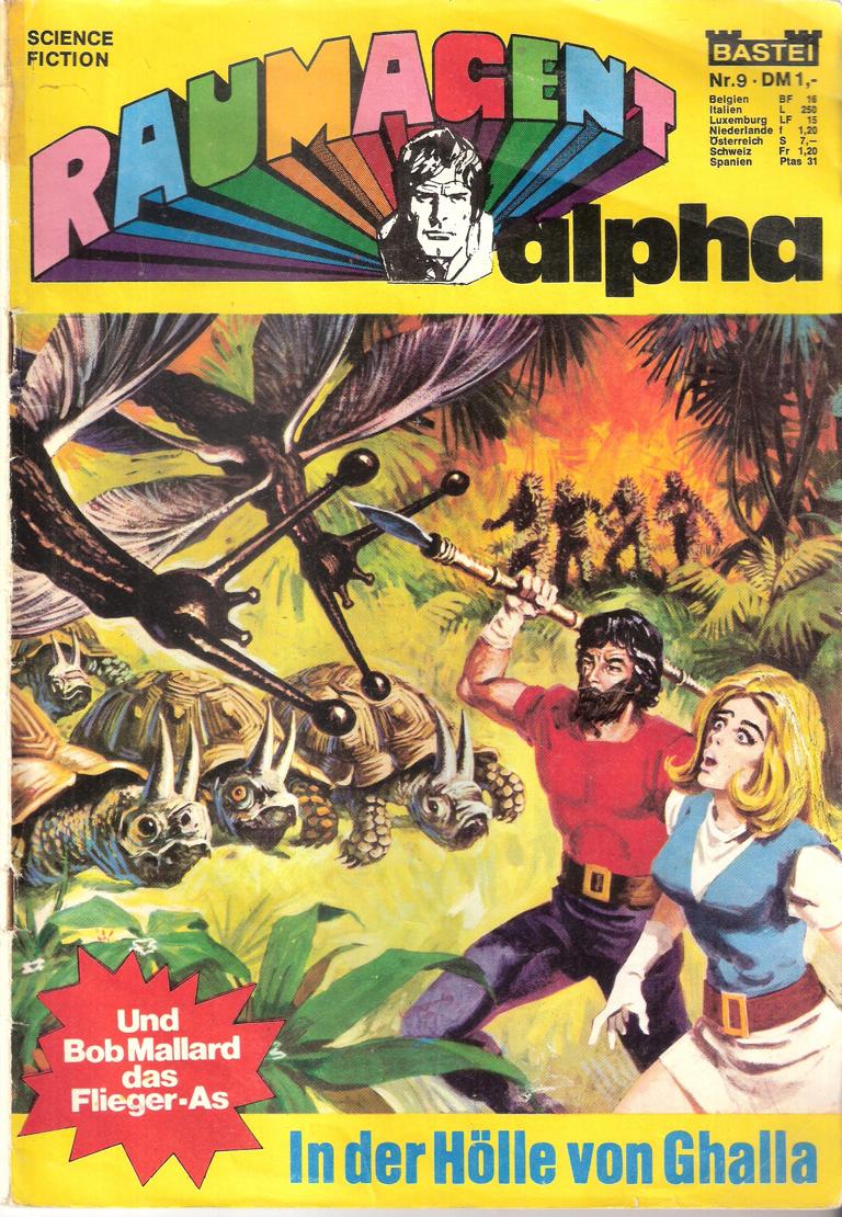Raumagent alpha Nr. 9Science FictionTitel: In der Hölle von GhallaVerlag: Bastei Comic-Heft 38 SeitenFormat: 18 x 26 cmGewicht: 73 gZustand: Gebrauchsspuren,Cover beschädigt, außen mit Tesageklebt
