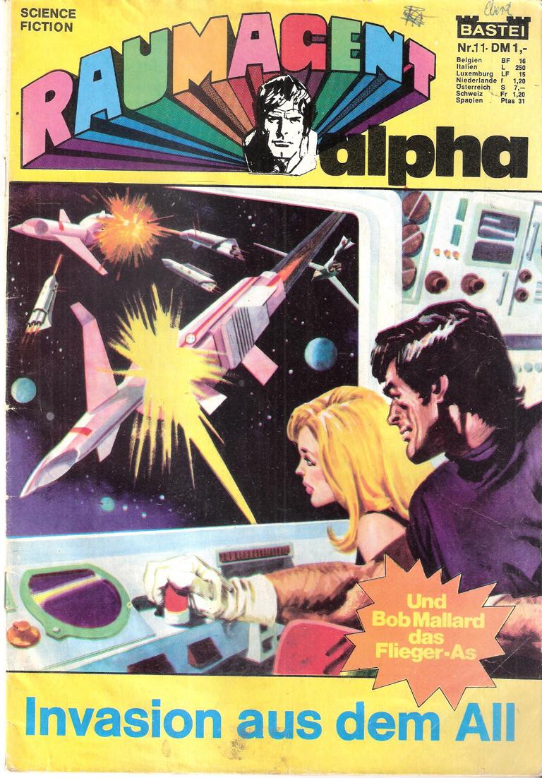 Raumagent alpha Nr. 11Science FictionTitel: Invasion aus dem AllVerlag: Bastei Comic-Heft 38 SeitenFormat: 18 x 26 cmGewicht: 73 gZustand: Gebrauchsspuren am Cover, sonst guter Zustand