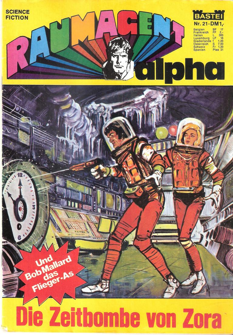 Raumagent alpha Nr. 21Science FictionTitel: Die Zeitbombe von ZoraVerlag: Bastei Comic-Heft 38 SeitenFormat: 18 x 26 cmGewicht: 73 gZustand: gut