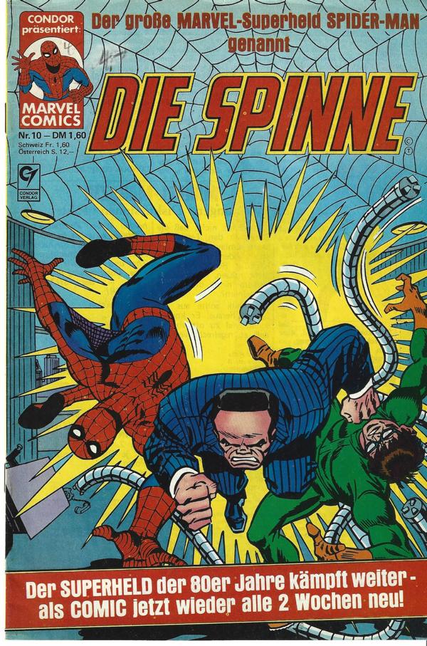 Condor präsentiert Marvel Comic - Die Spinne Nr. 10Verlag: Condor Verlag (c) 1972-1980Comic Heft Format: 17,5 x 26 cmZustand:gut erhaltenes Exemplar,Fleck am Cover, ansonsten sehr guter Zustand.Comic Superhelden