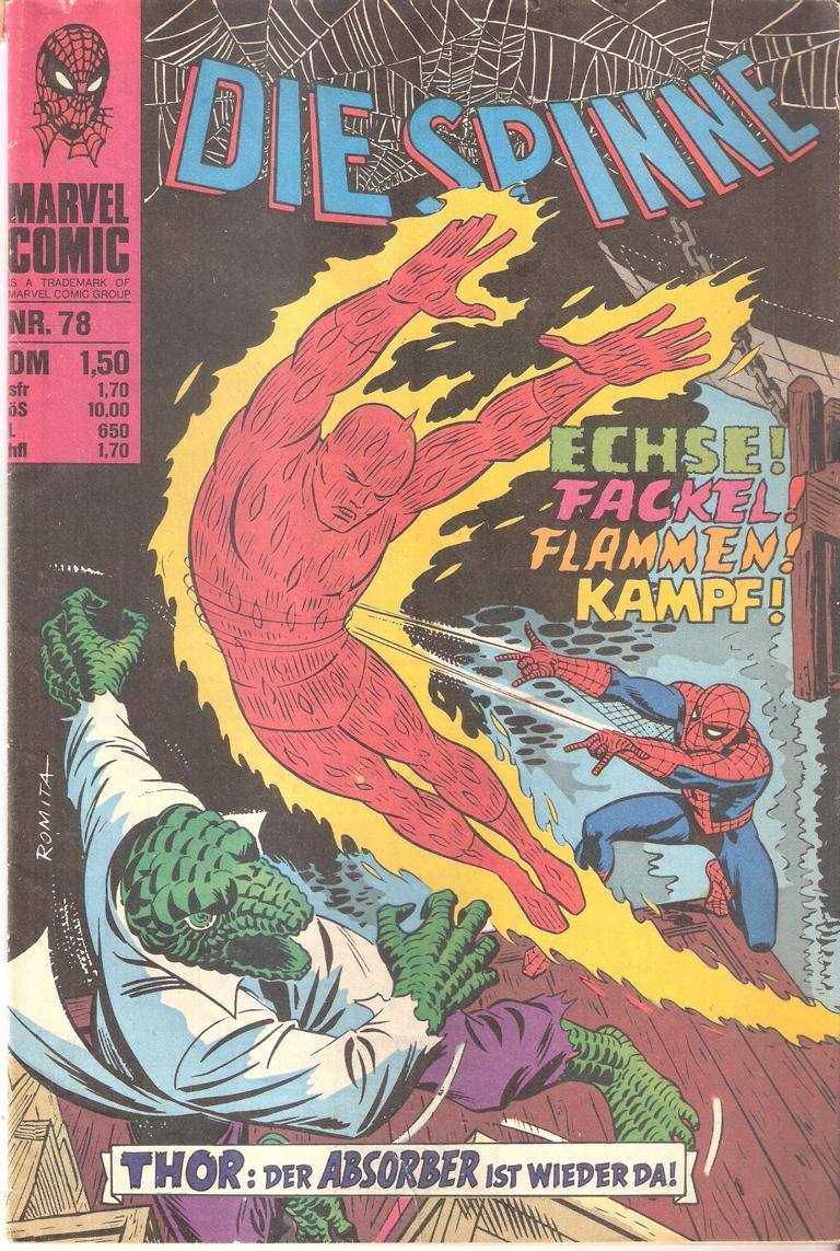 Marvel Comic - Die Spinne Nr. 78Titel: Thor: Der Absorber ist wieder da ! Echse! Fackel ! Flammen ! Kampf !Verlag: (c) 1976 Williams VerlagComic Heft 31 SeitenFormat: 17,5 x 26 cmGewcht: 52 gZustand: gebraucht, Cover unten ca. 2 cm mit Tesageklebt, innen gutComic Superhelden