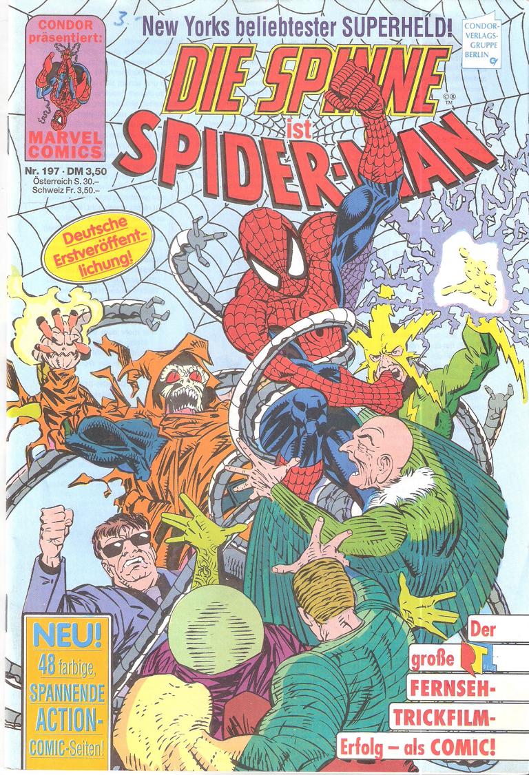Die Spinne ist Spider-Man Nr.197Spider-Man Der Tod kommt von ObenDie Rückkehr der Unheilvollen Sechs -Teil 5Verlag: Condor Präsentiert Marvel ComicsComic HeftFormat: 17,5 x 26 cmGewicht: 93 gZustand: gut