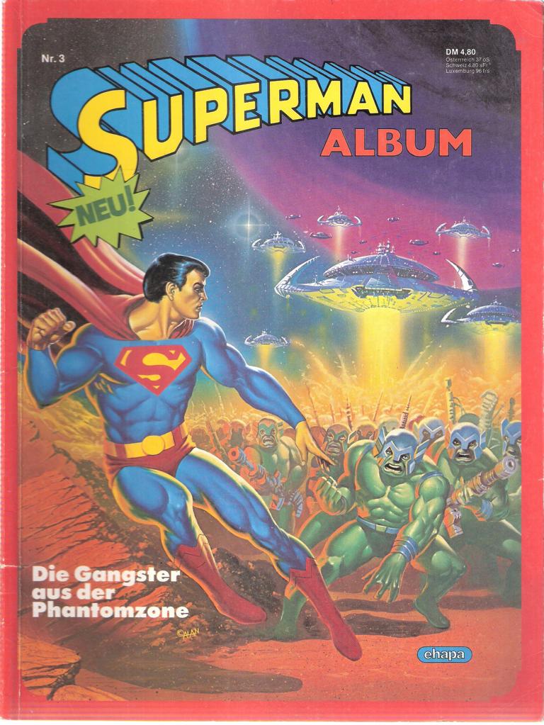Superman Album Nr. 3Titel: Die Gangster aus der PhantomzoneVerlag: Ehapa Verlag GmbH (c) 1982Softcover 50 SeitenFormat: 21,5 x 28,5 cmGewicht: 149 gZustand: gut,mit leichte GebrauchsspurenComic - Superman