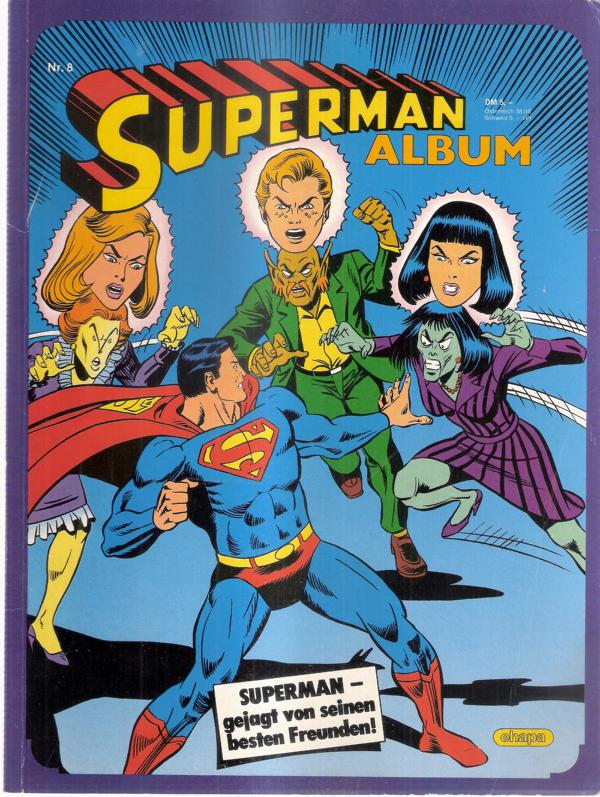 Superman Album Nr. 8Titel: Superman gejagt von seinem besten FreundVerlag: Ehapa Verlag GmbH Stuttgart (c) 1983Comicheft 50 SeitenFormat: 21,5 x 28,5 cmGewicht: 150 gZustand: gut, leichte Gebrauchsspuren