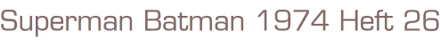 Comic - Superman Batman 1974 Heft 26Verlag: Ehapa Verlag Stuttgart 1974Comic-Heft 31 SeitenFormat: 17,5 cm x 26 cmGewicht: 60 gZustand: gut erhaltenes Exemplar mit leichten Gebrauchsspuren