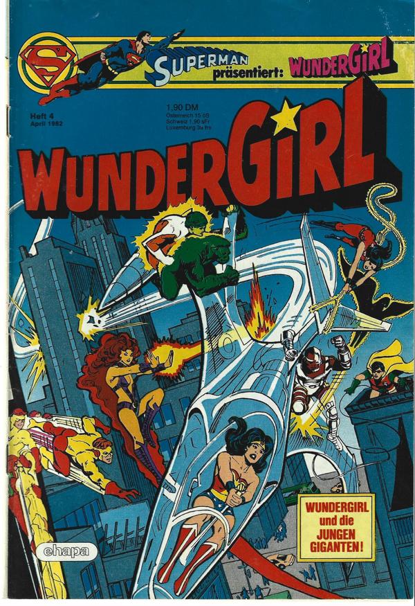 Superman präsentiert: WunderGirl Heft 4 / April 82 Wundergirl und die jungen Giganten ! Ehapa Comic Verlag: Ehapa Verlag 1982Comic - Heft, 31 Seiten Format: 17,5 cm 26 cm Zustand: gut, minimale Gebrauchsspurenam Cover, Sammel-Ecke vorhanden.
