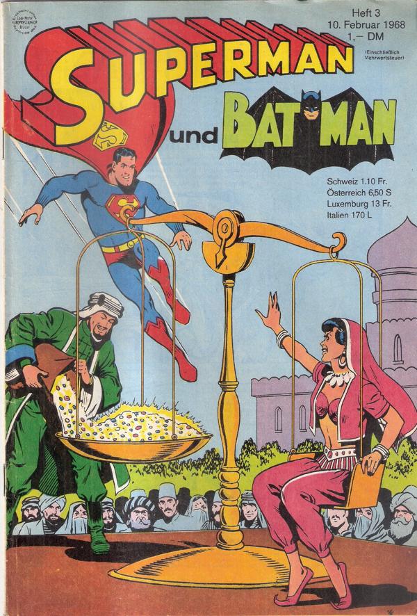 Comic - Superman und Batman 1968 Heft 3Verlag: Ehapa Verlag Stuttgart 1968Comic-Heft 30 SeitenFormat: 17,5 cm x 26 cmGewicht: 55 gZustand: gut erhaltenes Exemplar