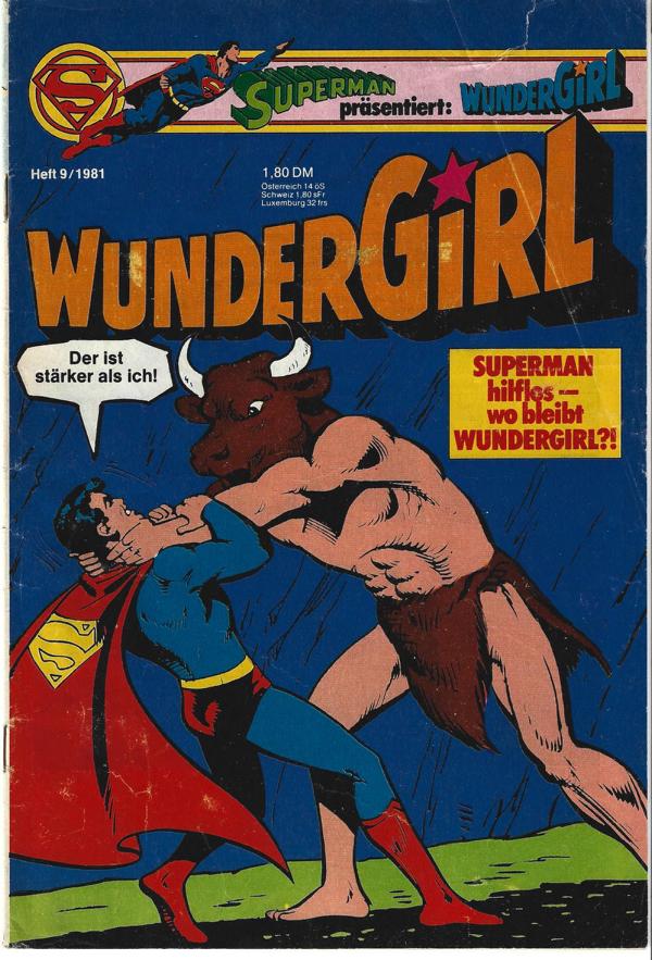 Superman präsentiert: WunderGirl Heft 9/ sept. 81 Ehapa Comic Verlag: Ehapa Verlag 1981Comic - Heft, 31 Seiten Format: 17,5 cm 26 cm Zustand: gut, leichte Gebrauchsspuren,mit Sammler-Ecke