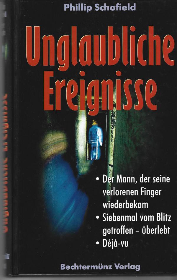 Titel: Unglaubliche Ereignisse- der Mann der seine verlorenen Finger wiederbekam.- Siebenmal vom Blitz getroffen - überlebt.- Déjà-vuAutor: Phillip SchofieldISBN 3828948103Verlag: Bechtermünz 1999Hardcover 187 Seiten, große SchriftFormat: 13,5 x 22 x 2 cmZustand: sehr gut