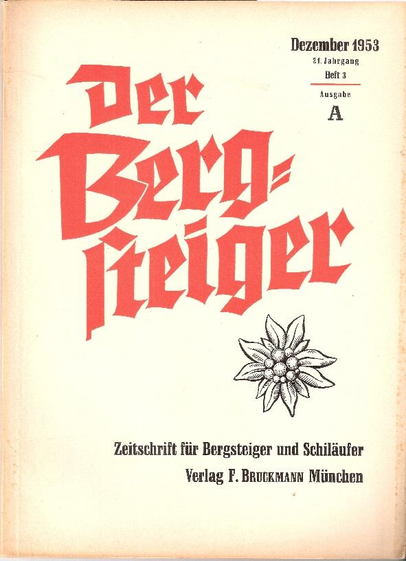 Titel: Der Bergsteiger Dezember 1953Zeitschrift für Bergsteiger und SchiläuferVerlag: F. Bruckmann München 12/1953ZeitschriftFormat: 18,3 x 25 cmGewicht: 133 gZustand: am Cover Lagerspuren, innen Papier etwas nachgedunkelt,ansonsten gut erhaltenes ExemplarZeitschrift Alpinismis - Bergsteiger