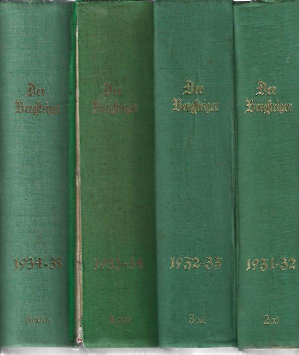 Titel: Der Bergsteiger Okt.1931 - Sept.1939 in 8 BüchernDeutsche Monatszeitschrift für Bergsteigen, Wandern und Schilaufen8 Bücher: 1) Oktober 1931- Sept. 1932; 2) Okt. 1932-Sept.1933; 3) Okt. 1933-Sept.1934; (Buchrücken ausgerissen) 4) Okt.1934-Sept.1935; 5) Okt. 1935-Sept. 1936; 6) Okt.1936-sept.1937; 7) okt.1937-Sept.1938; 8) Okt.1938 – Sept. 1939 (Buchrücken ausgerissen)Verlag: F. Bruckmann München Zeitschriften gebundenFormat: 19 x 25 x 5 cm x 8 BücherZustand: deutliche Gebrauchsspuren Band 1933-1934 + 1938-1939 amBuchrücken, eingerissen, Papier altersbedingtnachgedunkelt. Akzeptable ExemplareZeitschrift Alpinismis - Bergsteiger