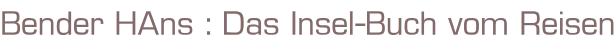 Titel: Das Insel-Buch vom ReisenAusgewählt von Hans Bender Insel VerlagISBN 3458158421Verlag: 6. Auflage 1985 Insel VerlagGebundene Ausgabe 1, 292 SeitenFormat: 13 cm x 20,5 cm x 3 cmGewicht: 382 gZustand: gut,