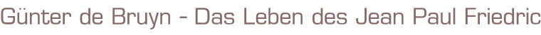 Titel: Das Leben des Jean Paul Friedrich Richter ISBN 3596109736Autor: Günter de Bruyn Verlag: Fischer 1991Taschenbuch, 408 SeitenFormat: 12,5 x 19 x 2,3 cmGewicht: 363 gZustand: Buchschnitt angestaubt, sonst guter Zustand. Biografie