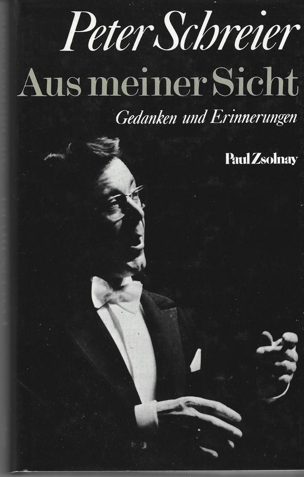 Peter SchreierAus meiner Sicht.Gedanken und Erinnerungen.Verlag: Paul Zsolnay Wien/Hamburg 1983ISBN 3552035354Leinen mit Schutzhülle, 205 SeitenFormat: 13 x 20,5 x 2,5 cmZustand: sehr gut