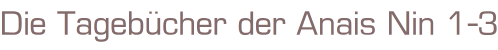 Die Tagebücher der Anais Nin 1-3, 1931-1944Herausgeber: Gunther StuhlmannVerlag: Deutscher Taschebuch Verlag11. Auflage 1981Drei Taschenbücher, Format: 10,5x18x5,5cm cmGewicht: 661 gZustand: gut, leichte Stand- und Gebrauchsspuren Biografie