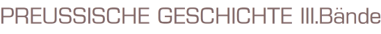 Band I. Band 1 - 2 Genesis des Preussischen Staates Erstes Buch Kollonisation von Brandenburg und Preussen Zweites Buch Das Kurhaus Brandenburg vom fünfzehnten bis zum siebzehnten Jahrhundert Drittes Buch Der große Kurfürst Viertes Buch Der erste König Band II. Fünftes Buch Friedrich Wilhelm I. in den Konflikten der Europäischen Mächte 1715-1732 Sechstes Buch Heer und Staat. Die späteren Jahre Friedrich Wilhelms I. Siebtes Buch Regierungsantritt Friedrichs II. und Beginn seiner Feldzüge Achtes Buch Der erste schlesische Krieg bis zur Verabredung von Kleinschnellendorf Okt. 1741 Band III.Neuntes Buch Definitive Erwerbung und neue Einrichtung von Schlesien Zehntes Buch Friedrich II. und das Deutsche Reich Ursprung neuer Entzweiungen Elftes Buch Der zweite Schlesische Krieg Zwölftes Buch Jahre des Friedens