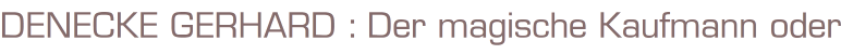 Der magische Kaufmann oder die Bekehrung im Café Centralund weitere, dem wahren Leben abgelauschte BerichteISBN 3921294010Autor: Gerhard DeneckeVerlag: Klaus Hesse 1973 broschierte Ausgabe, 148 SeitenFormat: 14,5 cm x 19 cm x 1 cmGewicht: 200 gZustand: gut